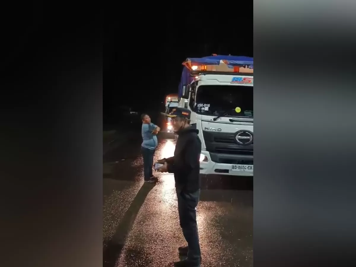 Salah seorang warga setempat menyampaikan peringatan keras kepada para sopir truk batu bara agar tidak lagi mencoba melanggar aturan yang berlaku.