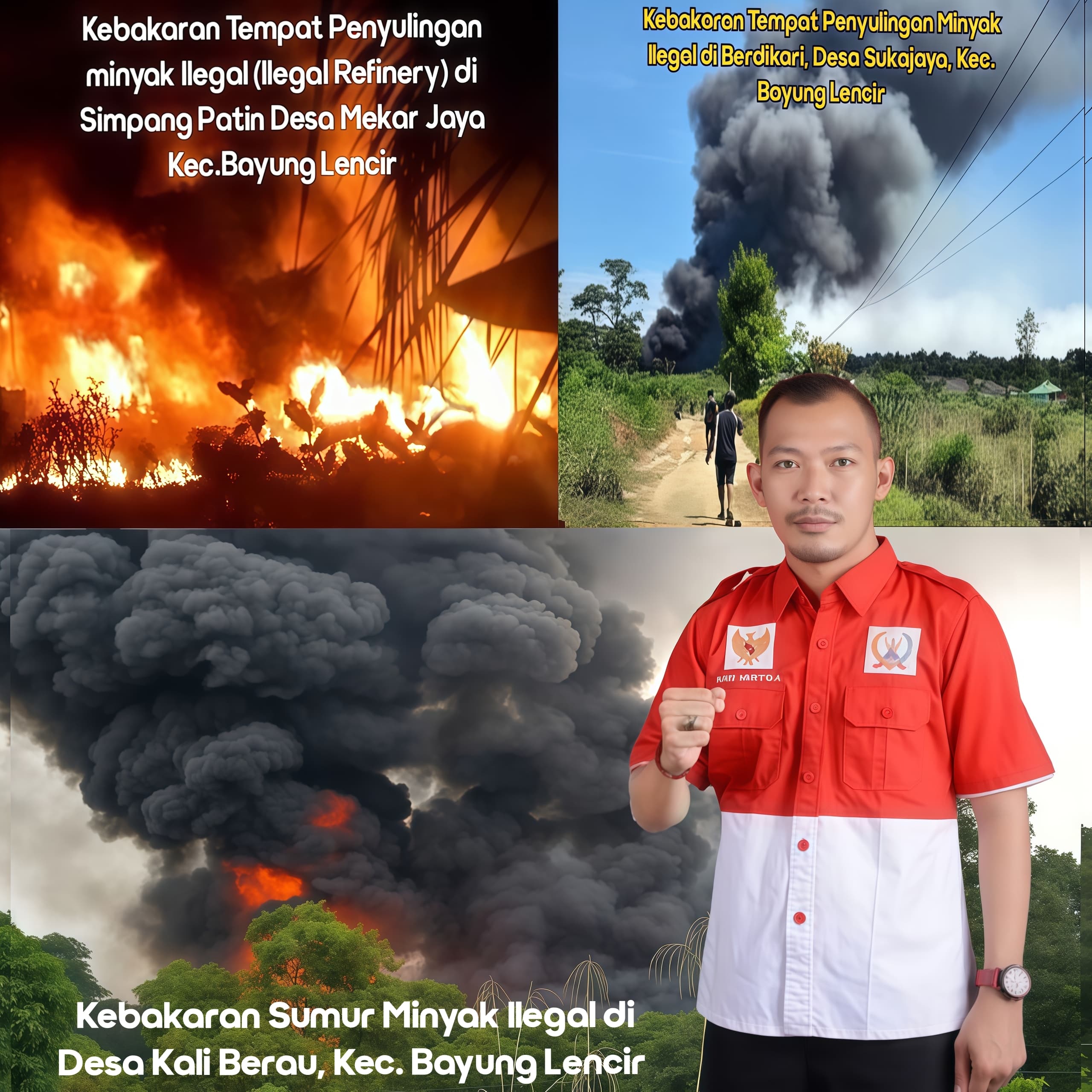 1. Kebakaran tempat penyulingan minyak ilegal di Simpang Patin, Desa Mekar Jaya (2/8/2025), diduga milik Sultan dan Umi, yang disebut-sebut Warga Teluk Kijing Kecamatan Lais.